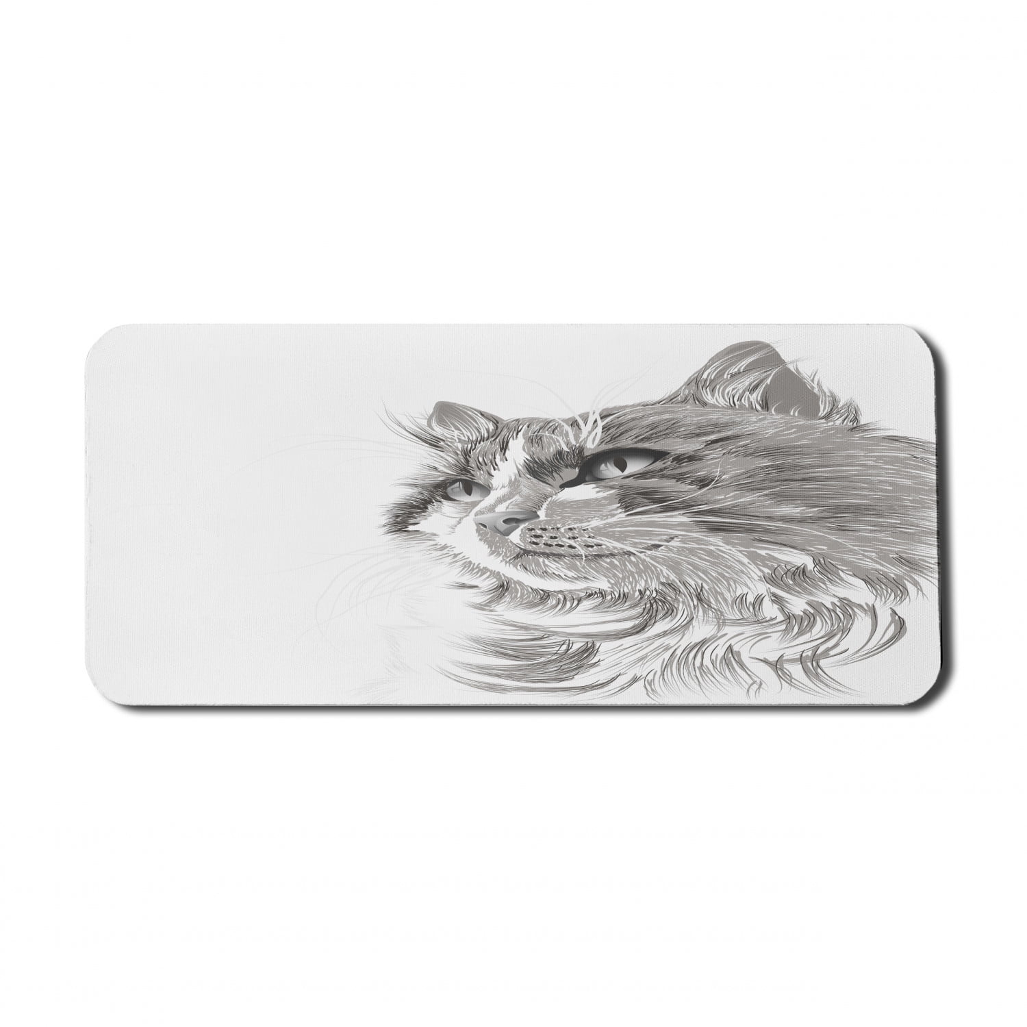 Animal Computer Mouse Pad Cat Head Portrait Furry Head Kitten Domestic Meow Pet Drawing Illustration Rectangle Non Slip Rubber Mousepad Large 31 X 12 Gaming Size Grey White By Ambesonne Walmart Com